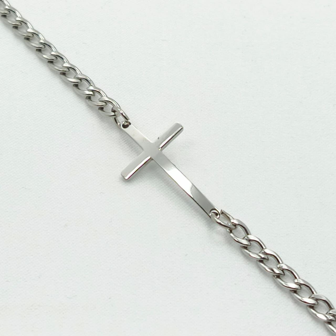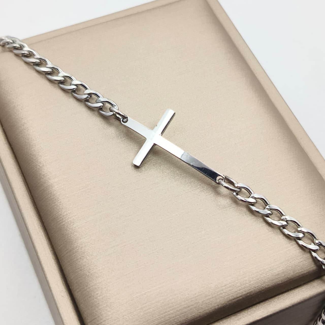 💎ESCLAVA TEJIDO CUBANO CON CRUZ EN ACERO RODINADO + CAJA DE REGALO🎁